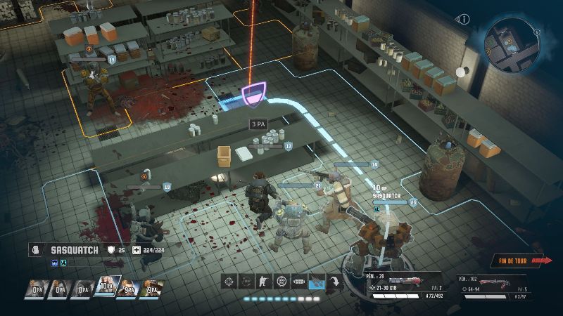 Wasteland 3 se joue au tour par tour, chaque personnage a des points d’action (qui se consomment quand il faut se déplacer, attaquer, utiliser un objet d’inventaire) et la plupart d’entre eux se battront avec des armes à feu. Tout ça donne aux joutes un côté tactique prenant. Il faudra déjà commencer par bien gérer ses munitions pour ne pas tomber en rade. Ensuite il faudra apprendre à gérer les différents types d’armes, leur portée, leur mode de tir, etc. Le fusil à pompe par exemple ne cible pas qu’un adversaire mais disperse ses munitions dans une zone en forme de cône. Puissant, il faudra cependant faire attention à ce que vos équipiers ne soient pas pris dans la zone de tir avec l’ennemi. Autre chose à gérer, les abris. Dans Wasteland 3, le positionnement de vos personnages sera primordial. Claquer tous ses points d’action pour se retrouver à découvert, sans objet du décor pour se protéger mènera souvent à une mort certaine. A noter, les développeurs ont eu la bonne idée de faire apparaître une grille afin de mieux jauger les déplacements des personnages. Si la zone est quadrillée en bleu, cela signifie qu’une fois sa destination atteinte, votre ranger aura encore assez de points d’action pour attaquer. Si la zone est orange, une fois arrivé, vous ne pourrez plus attaquer. La prise en main est plutôt simple et l’utilisation de la manette est gérée de manière exemplaire. On regrette juste la navigation dans les menus un poil fastidieuse et le fait qu’il faille passer par là pour afficher la map. Une map du monde sur laquelle vous vous baladerez dans un véhicule upgradable (blindage, armes, klaxon) qui pourra même participer à certains combats.